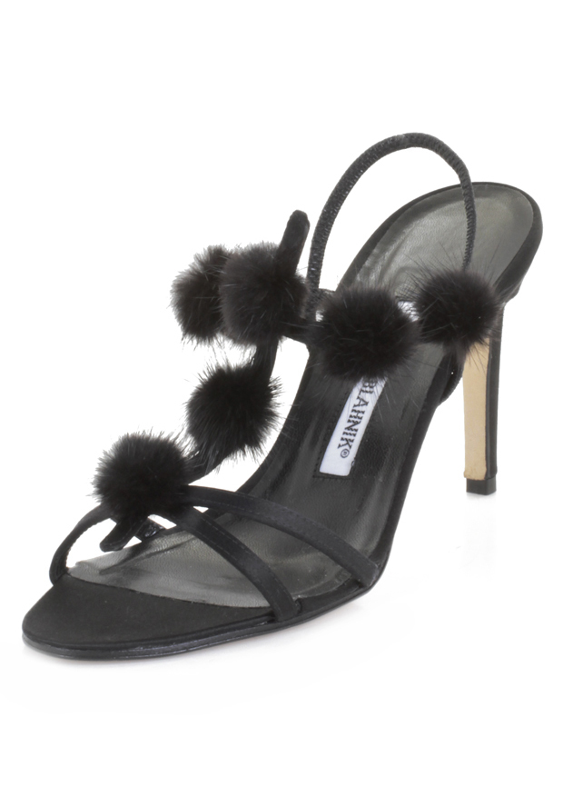 | Features | Softly pointed open toe. Covered heel. Black fur detailing at upper toe and vamp. This line runs small. We suggest that you order a half size larger than you typically wear. |